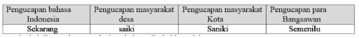 Dari tabel diatas adanya perbedaan bahasa disebabkan oleh….